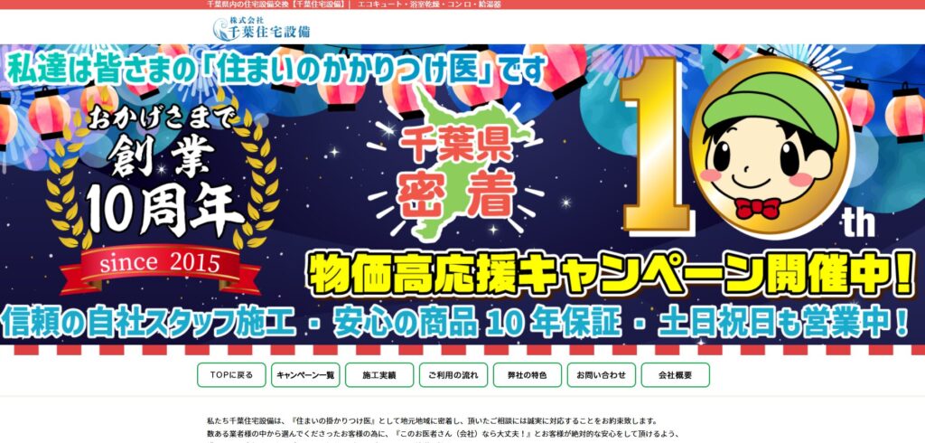 関東、東北、中部、近畿と全国19都道府県で展開しており、千葉市若葉区内エコキュート交換業者の中でもトップクラスの低価格帯を実現しています。