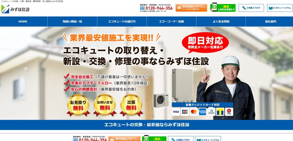 給湯器駆けつけ隊は、株式会社ミズテックが運営する給湯器・エコキュートの修理&交換専門業者です。