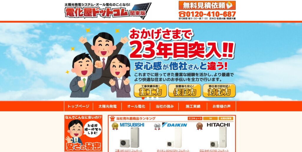 関東、東北、中部、近畿と全国19都道府県で展開しており、町田市内エコキュート交換業者の中でもトップクラスの低価格帯を実現しています。