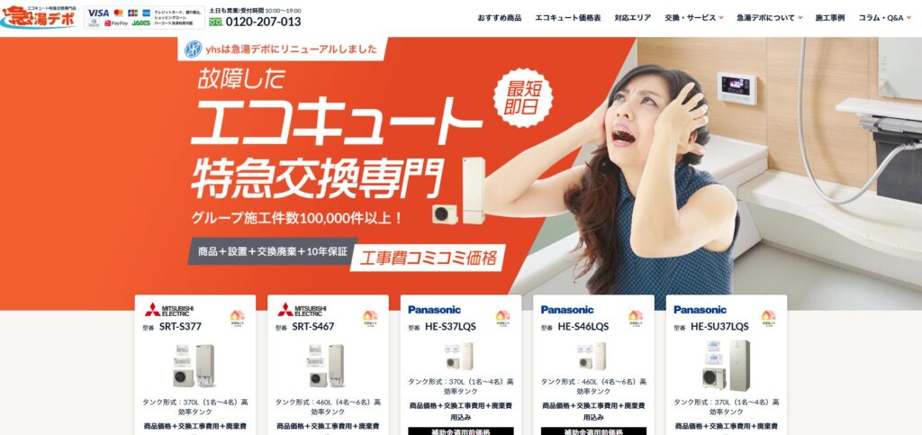 三菱、ダイキン、パナソニック、日立、コロナと、5メーカーのエコキュートに対応しています。