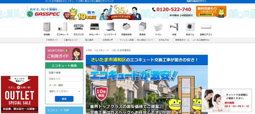 関東、東北、中部、近畿と全国19都道府県で展開しており、さいたま市浦和区内エコキュート交換業者の中でもトップクラスの低価格帯を実現しています。