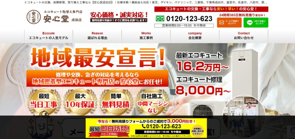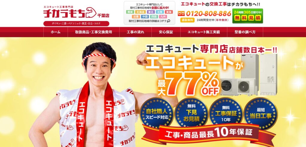 関東、東北、中部、近畿と全国19都道府県で展開しており、佐倉市内エコキュート交換業者の中でもトップクラスの低価格帯を実現しています。