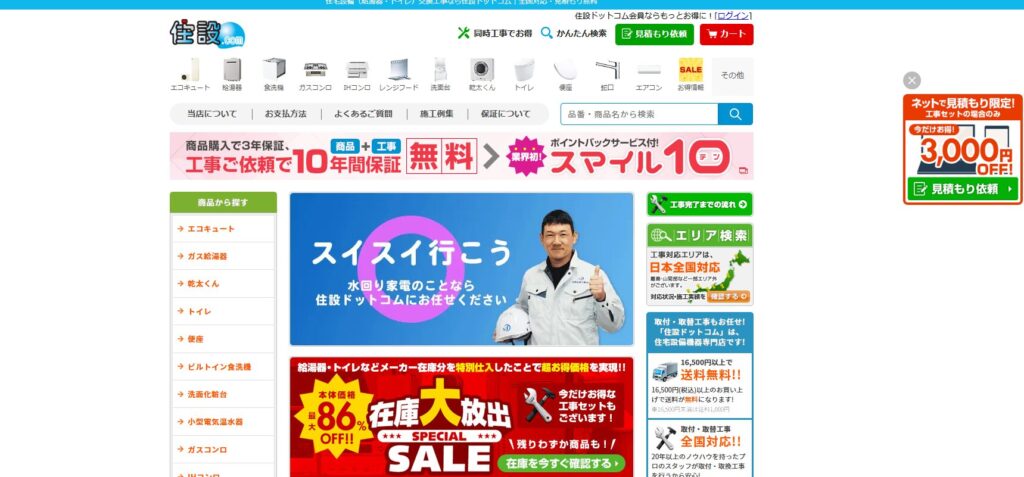 工事費込みでも34万円台からと価格には自信があるため、もし他社より見積りが高い場合は、価格相談にも柔軟に対応。