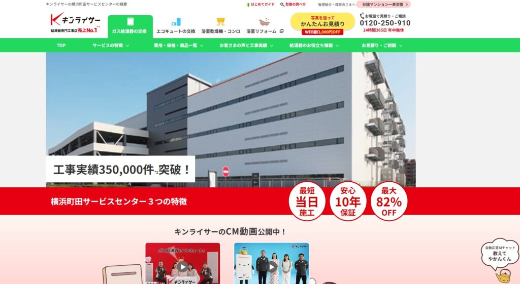 さらに商品・工事ともに10年間の無料保証があり、日本ガス機器検査協会の資格を持つスタッフが施工するため、工事後のトラブルも少なく安心です。