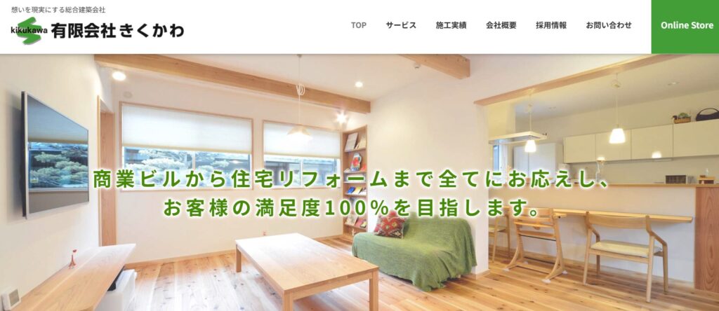 | サービス内容 | 外構・外装、オフィスの内装工事、建物全⾯改築・リフォーム、木工製品や什器など製作 |