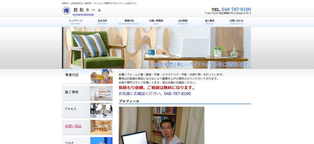 | サービス内容 | ・総合リフォーム・水回りの修理・修繕・ガス工事・電気工事・内装・外壁・外構工事 |