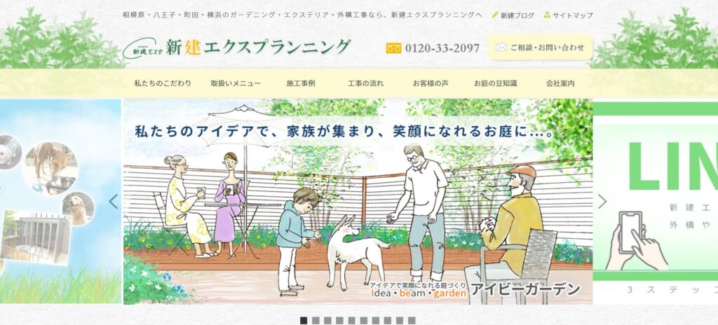 | サービス内容 | 外構工事・外構リフォーム・造園・土木工事 エクステリア/ガーデニング/土木一般/舗装/設計/ 施工 |