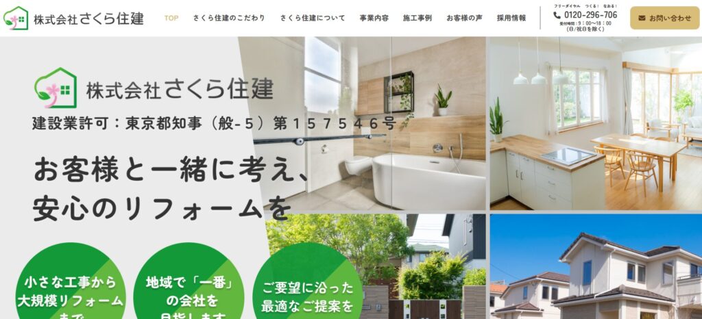 | サービス内容 | 各種リフォーム、キッチン、浴室、トイレ、洗面台、リビング、洋室、和室、収納、玄関・廊下、外壁・屋根、エクステリア |