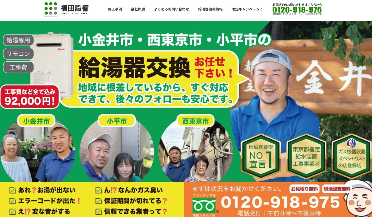 小金井・小平エリアの給湯器交換|株式会社福田設備