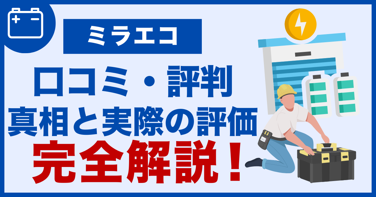 「ミラエコ 口コミ」「ミラエコ 評判」と検索しているあなたは、太陽光発電や蓄電池の導入を検討している中で、「本当に信頼できる会社なのか?」「ミラエコの実際のサービス品質は?」と不安に感じているのではないでしょうか。
